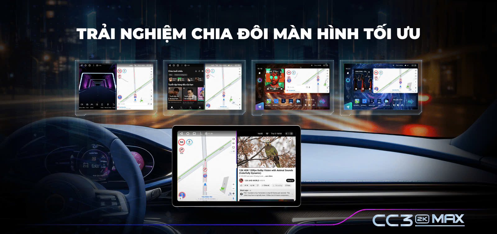 Màn hình Teyes CC3 2K MAX nổi bật với tính năng chia đôi màn hình, cho phép hiển thị song song hai ứng dụng một cách linh hoạt và hiệu quả. Tính năng này giúp người dùng dễ dàng sử dụng nhiều ứng dụng cùng lúc, nâng cao trải nghiệm giải trí và làm việc trên xe, mang lại cảm giác thăng hoa cho mọi hành trình.