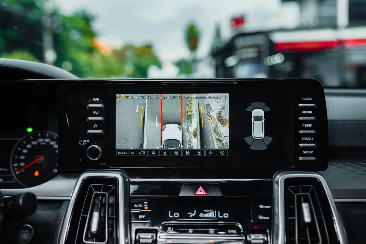 Camera 360 ô tô được xem là trợ lý quan sát toàn diện, giúp loại bỏ gần như hoàn toàn các điểm mù xung quanh xe. Hệ thống sử dụng nhiều camera gắn ở phía trước, sau và hai bên gương, kết hợp xử lý hình ảnh để hiển thị góc nhìn toàn cảnh trên màn hình trung tâm.